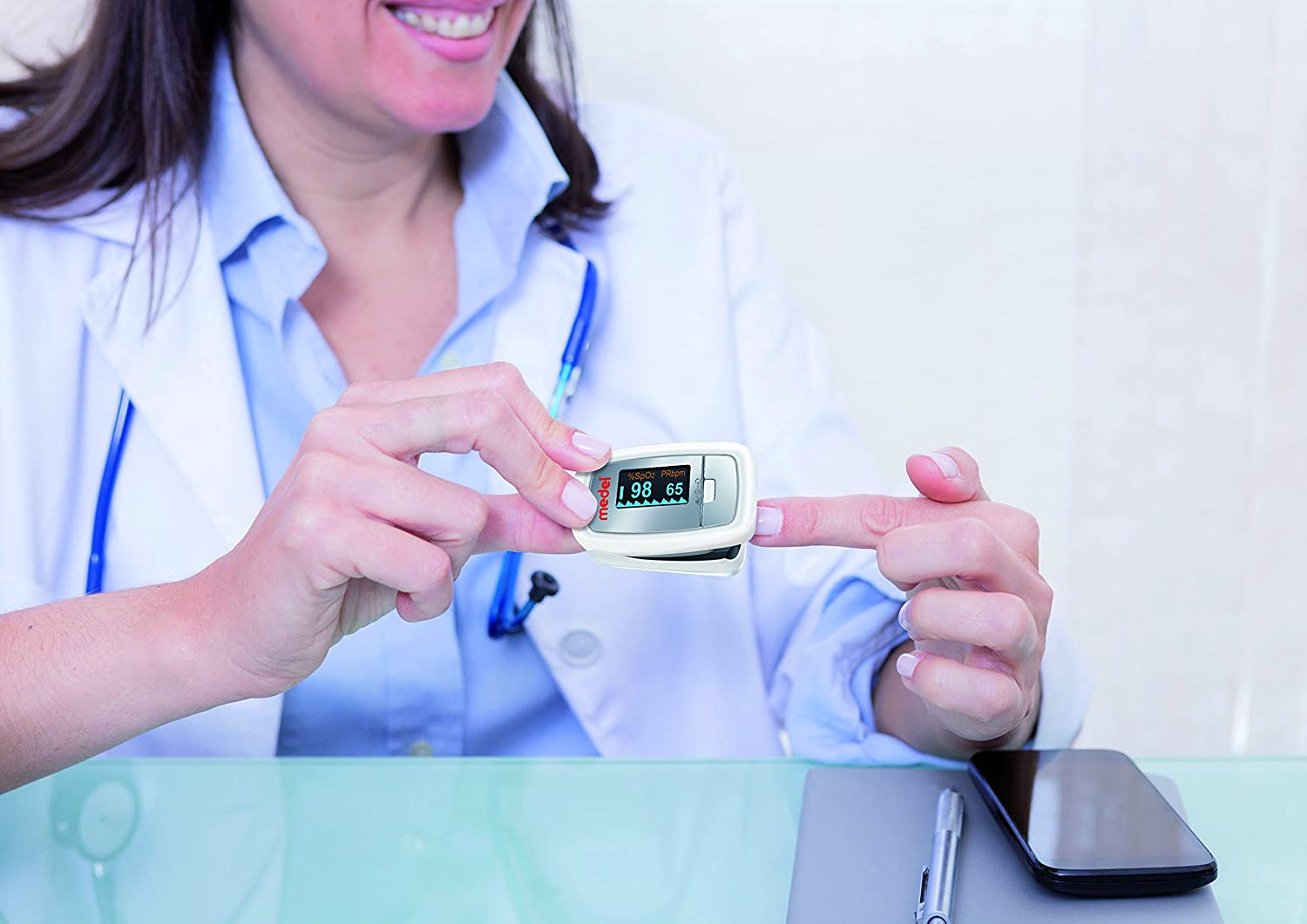 Το παλμικό οξύμετρο Medel Oxygen PO01 μετρά τον Κορεσμό Οξυγόνου (Sp02) και το ρυθμό καρδιάς (παλμοί).