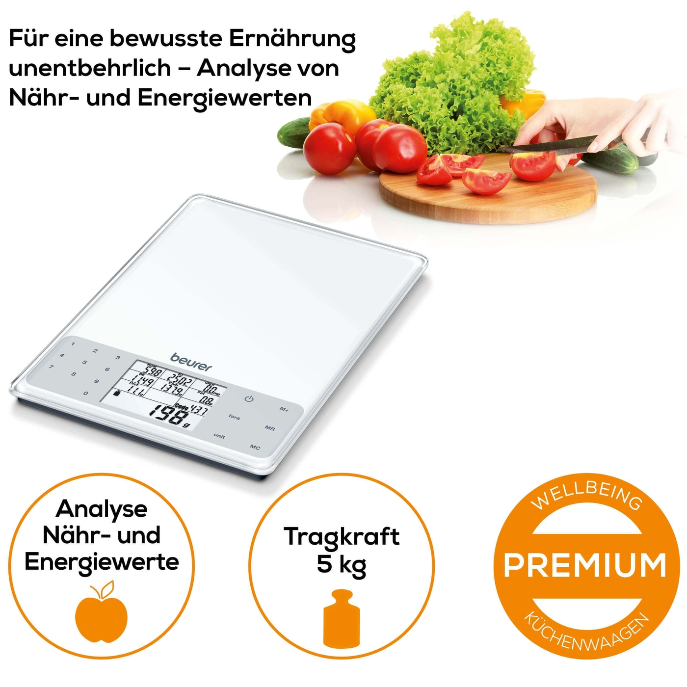Η ζυγαριά διατροφικής ανάλυσης τροφίμων της Beurer είναι ο ιδανικός σύντροφος για ενημερωμένη διατροφή.