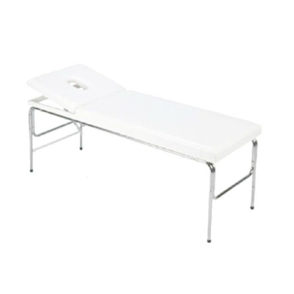 Η εξεταστική κλίνη με οπή στο προσκέφαλο έχει σκελετό από σωλήνα τετραγωνικής διατομής.