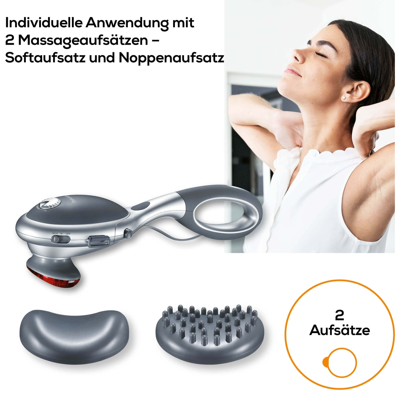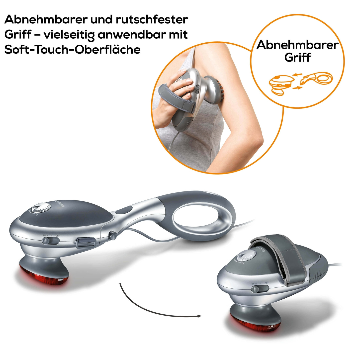 - Κάνει μασάζ μόνο με την κεφαλή χωρίς τη λαβή για πιο άμεση και δυνατή εφαρμογή.