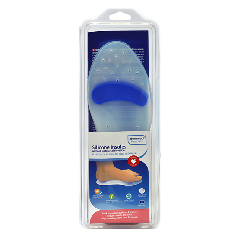 Πέλματα από ιατρική σιλικόνη. Διαθέτουν υποδοχές ανατομικής σχεδίασης και μαλακές ζώνες στις περιοχές της πτέρνας και των μεταταρσίων.